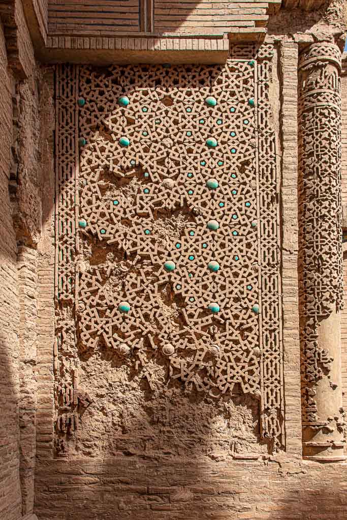 The extensive tile work of the Great Mosque of Herat is nothing short of impressive and if you spend some time slowly appreciating the architecture of the complex you will see elements of design from several different eras, dynasties, and empires. One really interesting spot to see this is via an entrance on the southeast corner of the mosque complex where you will be able to see a beautiful Ghorid portal with Ghorid-era Kufic script on either side of the archway that was uncovered by a renovation crew in 1964. You will inevitably pass by the Ghorid Portal if you pay a visit to the Tile Workshop.