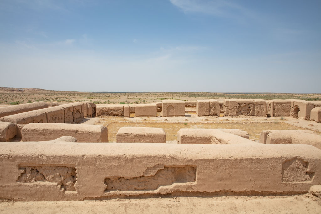 The citadel sits on a hill giving sweeping views of the Amu Darya and across the border into Afghanistan. Featuring over 100 rooms, countless ceramic pieces, sculptures, and even Bactrian manuscripts have been recovered here.
