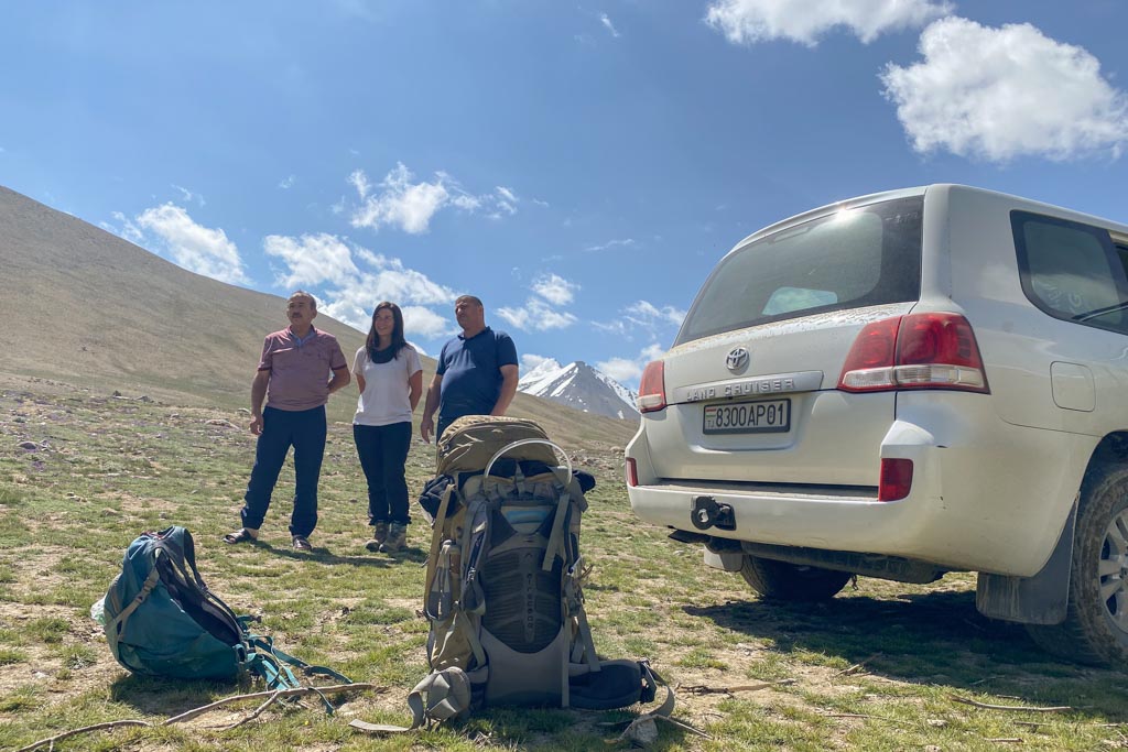 Before long, I was bouncing along a jeep track in an old UAZ packed to the gills (as you do in Tajikistan), hysterically laughing with the crew as we made our way up to the river that feeds into the lake.