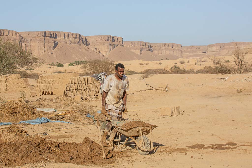 Mohammed originally hailed from the Hadhramaut but went to Sana’a to work in a souq for several years before being forced to return to his homeland to escape the war. Not many opportunities were available in the region upon his return, so he began making bricks. Brick making earns a decent living for the area at about 9,000 Yemeni Rials per day.
